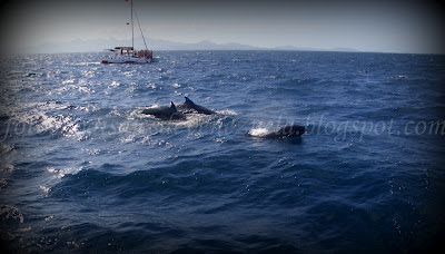 La verdad es que el día fue de lo mejor incluyendo el "snorkeling" en el Ferry Hundido, pero esta experiencia no incluida en la agenda fue única, ya que para la mayoría de nosotros fue la primera vez que apreciamos de cerca a estos sociables cetáceos.